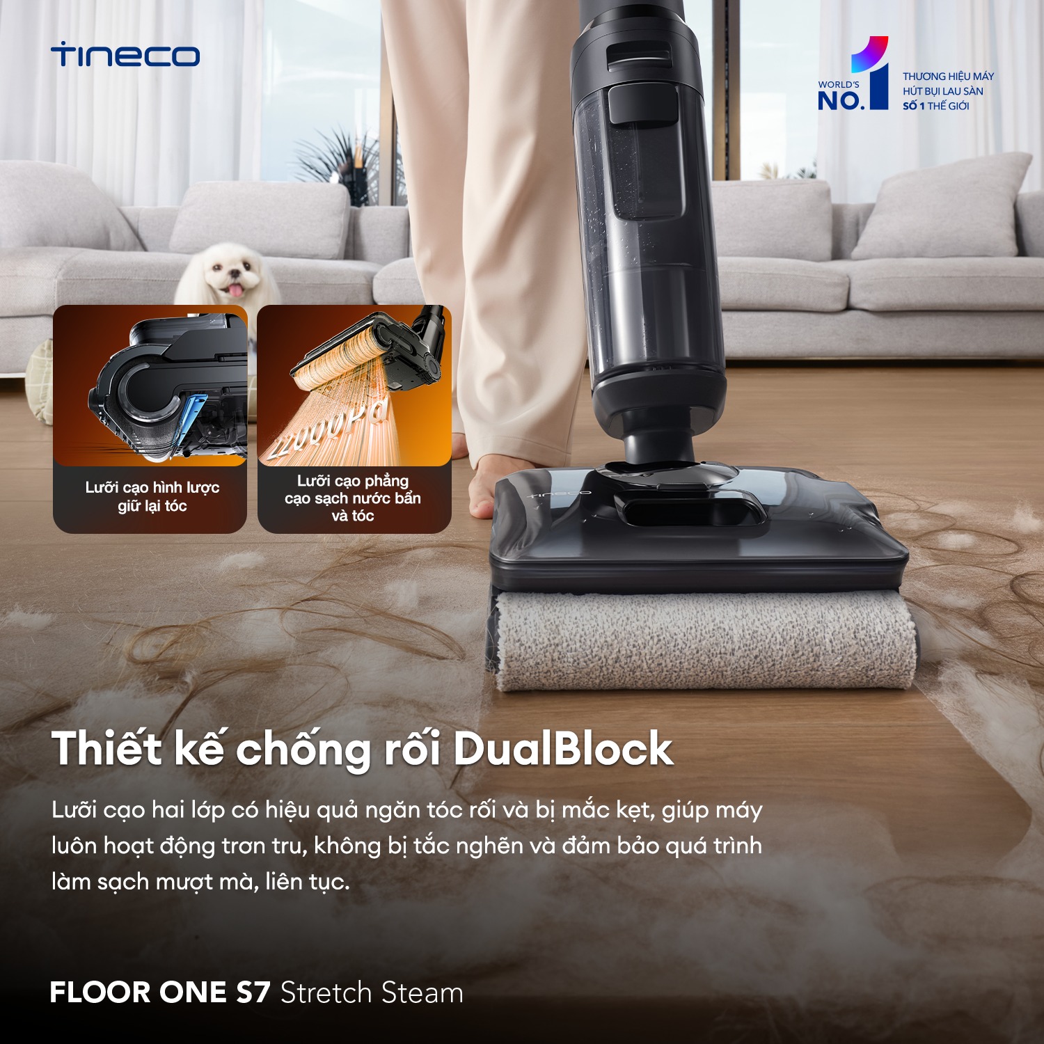 Công nghệ chống rối DualBlock loại bỏ hoàn toàn tình trạng lông, tóc quấn vào con lăn, đảm bảo máy hoạt động trơn tru và bền bỉ. Pin dạng túi nén dung lượng cao cho phép máy hoạt động liên tục lên đến 80 phút, đủ sức làm sạch cả những không gian rộng lớn mà không lo gián đoạn. Tineco Floor One S7 Stretch Steam là sự lựa chọn hoàn hảo cho những ai đang tìm kiếm một thiết bị đa năng, mạnh mẽ và thông minh để giữ cho ngôi nhà luôn sạch sẽ, an toàn.
