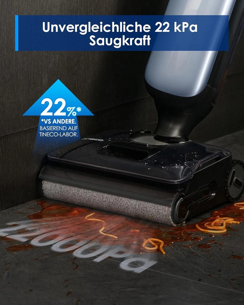 Máy lau sàn khô ướt Tineco Floor One S9 Artist Steam được nâng cấp lực hút lên đến 22.000PA, đánh bay “tất tần tật” các loại vết bẩn như: bụi bẩn, bụi mụi, các mảnh bánh vụn, lông thú cưng, tóc, hay cả những vết bẩn dạng lỏng như sữa, cà phê, coca,… Từ đó cho thấy, khả năng hút của Tineco Floor One S9 Artist Steam được đánh giá mang tính toàn diện cao, có khả năng hút sạch tối ưu trên mọi bề mặt sàn.