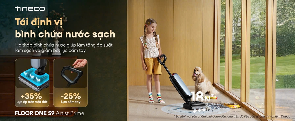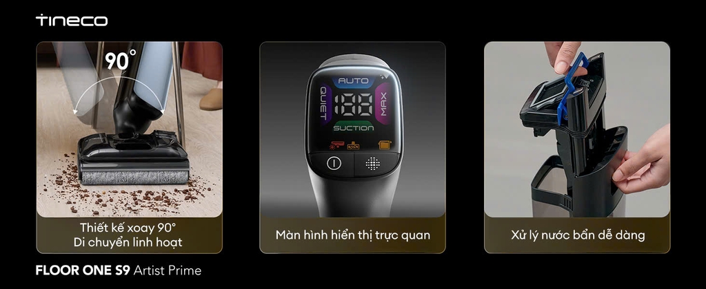 Tineco S9 Artist Prime lực hút mạnh mẽ 22.000Pa, hút sạch mọi loại bẩn khô và ướt