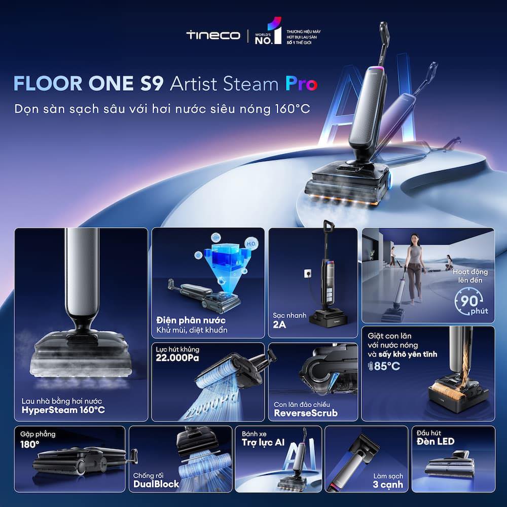 Máy hút bụi lau sàn khô ướt Tineco Floor One S9 Artist Steam Pro