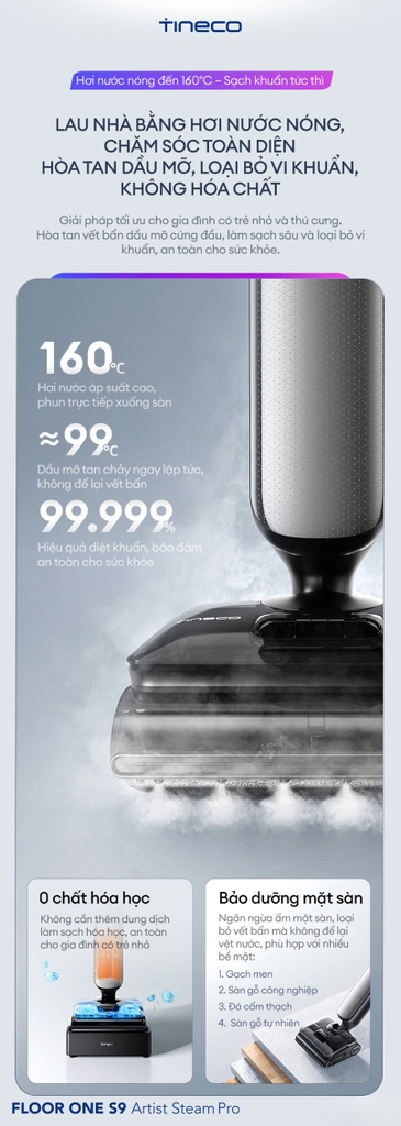 Thông số kỹ thuật Máy hút bụi lau sàn khô ướt Tineco Floor One S9 Artist Steam Pro