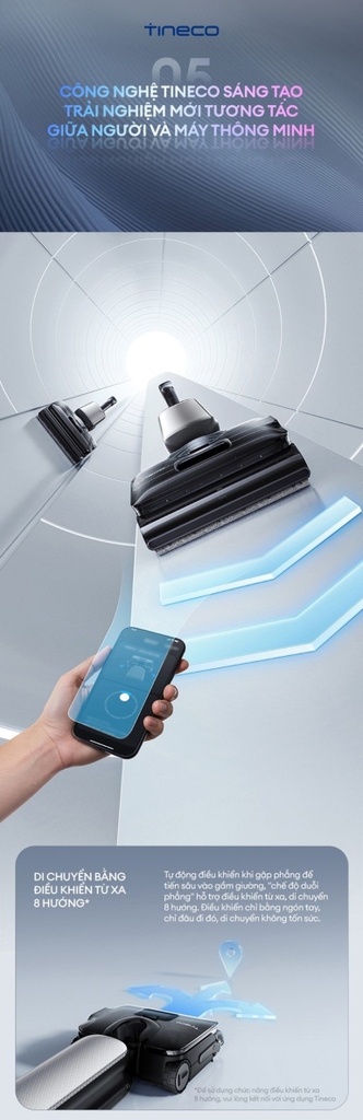 - Công nghệ Tineco MHCBS làm sạch con lăn liên tục