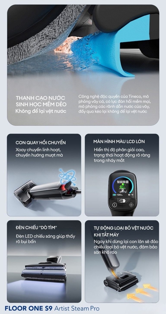 Đặc điểm nổi bật của Máy hút bụi lau sàn khô ướt Tineco Floor One S9 Artist Steam Pro