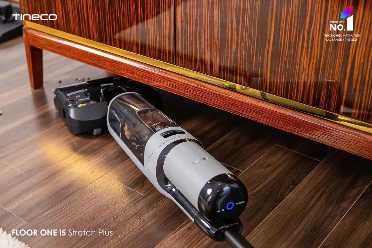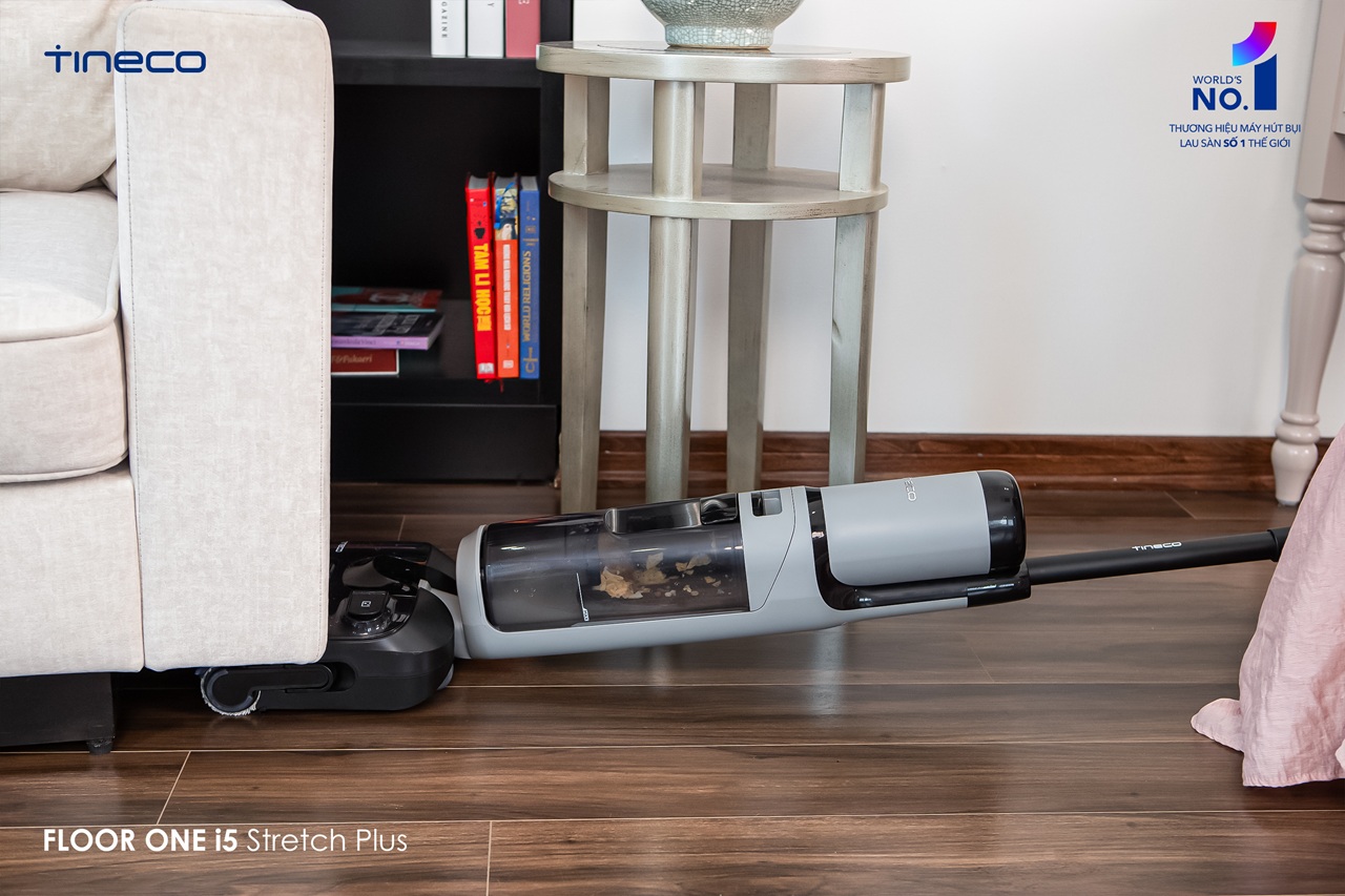 Nhờ công nghệ HyperStretch độc quyền, Tineco Floor One i5 Stretch Plus có thể ngả phẳng 180 độ đột phá. Khi ở trạng thái, máy chỉ cao 13cm, dễ dàng luồn lách vào những khu vực khó tiếp cận như gầm giường, gầm tủ hay sofa,…giúp bạn vệ sinh sâu mọi ngóc ngách dưới gầm nội thất một cách hiệu quả và thuận tiện hơn rất nhiều.