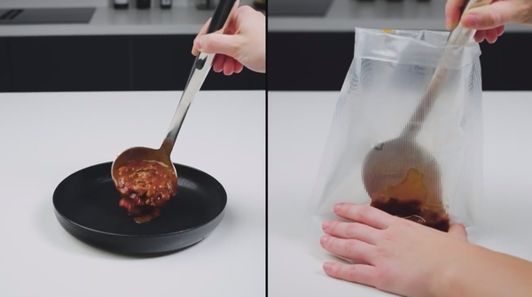Đóng gói chân không súp, nước sốt, v.v. rất dễ dàng