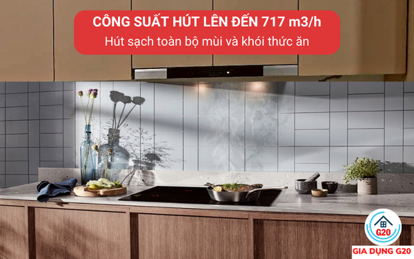 Công suất hút 717 m3/h hút sạch khói và mùi thức ăn, trả lại không khí tươi mát