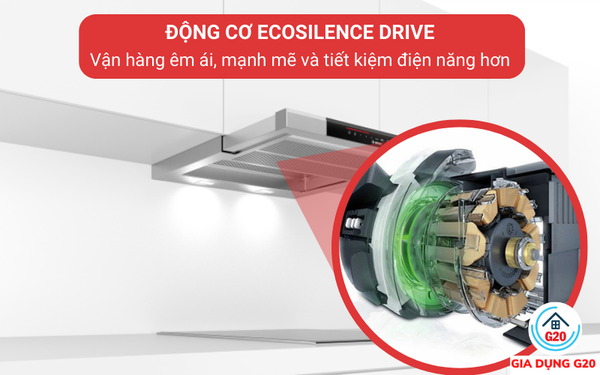 Với cơ chế đó, động cơ EcoSilence Drive loại trừ các yếu tố ma sát gây ồn và lãng phí điện năng. Giúp máy hút mùi vừa hoạt động trơn tru, êm ái lại không tiêu tốn điện năng. Đồng thời tăng cường tuổi thọ cho máy lâu bền hơn.