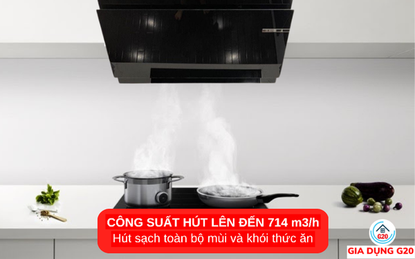 Công suất hút tối đa 714 m3/h hút sạch toàn bộ mùi và khói thức ăn