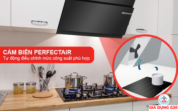 Với các tình huống và lượng khói mùi thải ra trong nhà bếp; cảm biến PerfectAir sẽ tự động chọn mức công suất hoạt động hiệu quả và chính xác. Đồng thời, chúng còn giúp giảm thiểu tiếng ồn trong lúc vận hành.