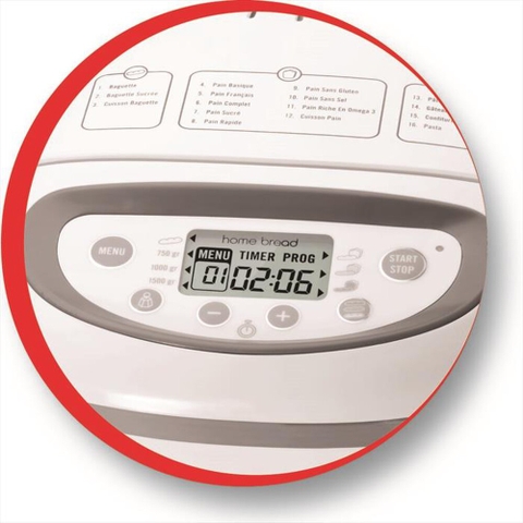 16 chương trình có sẵn bao gồm: bánh mì baguette, bánh mì ngọt, cách nấu bánh mì baguette, bánh mì đơn giản, bánh mì Pháp, bánh mì nguyên cám, bánh mì ngọt, bánh mì nhanh, bánh mì không chứa gluten, bánh mì không muối, bánh mì omega 3, nấu bánh mì, bột nhào, bánh ngọt, mứt, mì tươi.