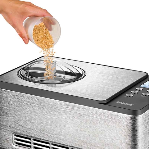 MÁY LÀM KEM UNOLD 48895 được điều khiển bởi một động cơ mạnh mẽ mà không sợ hoạt động liên tục. Máy làm đá có thể được đặt thành phút bằng các nút dễ sử dụng.