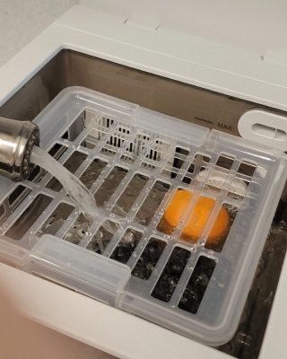 – Rửa khử trùng 30 phút (siêu âm 5 phút, làm sạch 25 phút, tuần hoàn nước cách nhau 5 phút 1 lần).