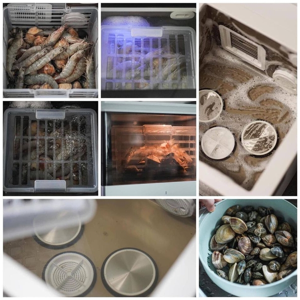 – Cá và động vật có vỏ 12 phút (2 phút rửa, 2 phút lưu thông, siêu âm 8 phút).