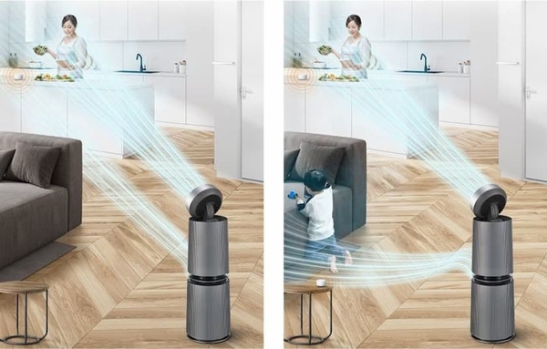 - Nhờ ứng dụng công nghệ AI, máy cho phép tập trung lọc 1 vị trí ô nhiễm nhất định hoặc chia ra lọc 2 không gian cùng lúc. Đây là điểm đặc biệt chỉ có ở dòng máy lọc không khí LG Alpha.