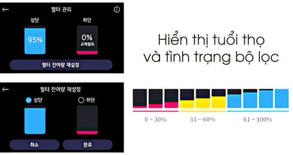 Cảm biến bộ lọc sẽ thông báo tới người dùng tình trạng của màng lọc, hiệu suất và tuổi thọ còn lại để thay thế kịp thời, giúp duy trì hiệu quả lọc tối đa của máy.