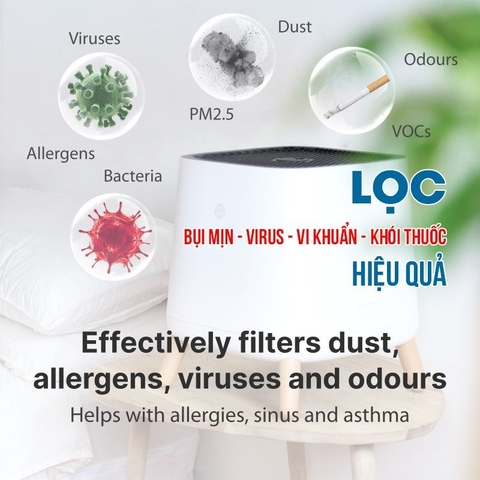 - Hiệu năng cao, chỉ mất 25 phút để làm sạch không khí trong căn phòng có diện tích 40m2 (đối với phòng trống, 30-50 phút cho căn phòng có nhiều đồ đạc)