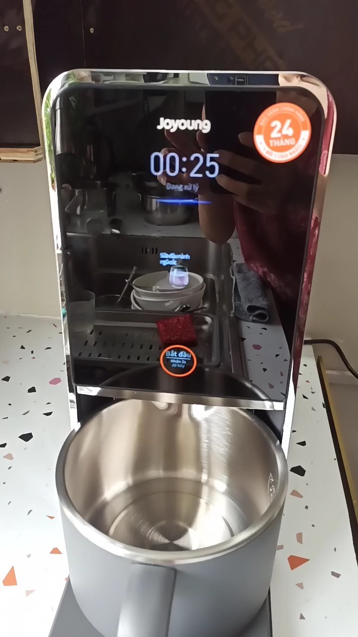 Sau khi hoàn tất quá trình nấu, Joyoung JSCB-K7 PRO sẽ tự động kích hoạt chế độ làm sạch mà không cần bạn thao tác thêm. Ngoài ra, bất cứ khi nào cần, bạn cũng có thể chủ động chọn chế độ "Vệ sinh – Khử trùng" để máy làm sạch sâu, loại bỏ cặn bã và mảng bám ở thành cối cũng như các khe kẽ bên trong. Tất cả đều được thực hiện hoàn toàn tự động, giúp bạn tiết kiệm thời gian và luôn giữ thiết bị sạch sẽ, an toàn cho lần sử dụng tiếp theo.