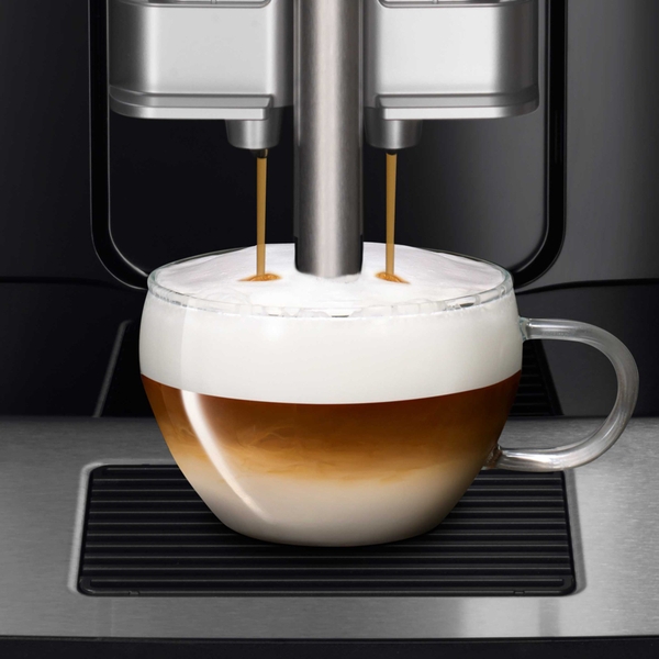 Nhiều khả năng và tính linh hoạt hơn. Vòi cà phê và bình sữa có thể điều chỉnh độ cao. Dù là tách espresso nhỏ hay ly latte macchiato cao tới 13 cm, bạn chỉ cần thưởng thức đặc sản cà phê mà bạn muốn.