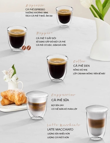 - Cafe Espresso, cappuccino hoặc latte macchiato chỉ bằng một nút bấm