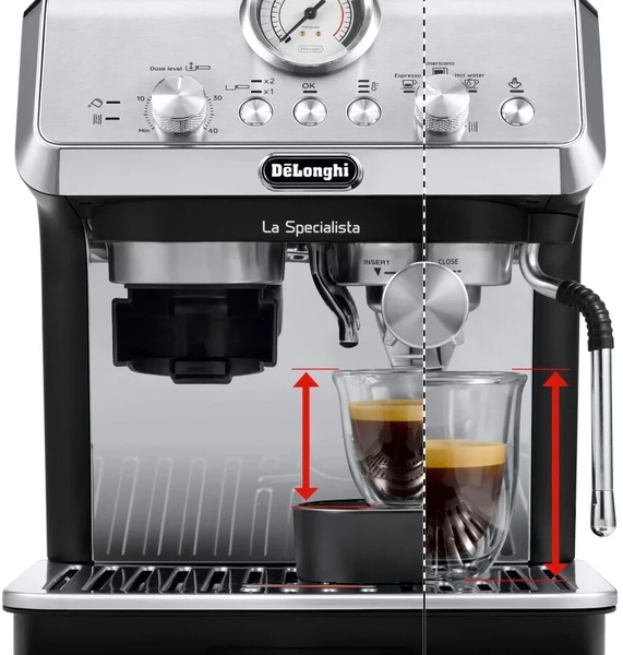 Với gờ bằng thép không gỉ bao quanh bảng điều khiển màu bạc có các nút điều khiển hiện đại và đồng hồ đo áp suất truyền thống làm trung tâm, bạn sẽ thấy rằng máy pha cafe De’longhi EC9155 MB La Specialista Arte rất nổi bật trong không gian bếp hoặc văn phòng của bạn.