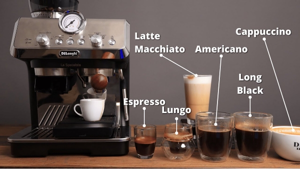 - Pha mọi loại cà phê: đen, nâu, bạc xỉu, espresso, latte, cappuccino, long coffee, Americano ...