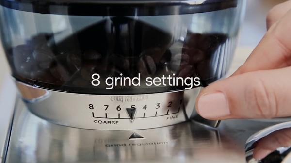 Máy xay có 8 cài đặt xay từ thô đến mịn, cung cấp các tùy chọn về việc xay hạt cà phê của bạn, đảm bảo mức độ xay được cá nhân hóa tối đa, cho phép cà phê xay có hương vị đầy đủ, giải phóng tất cả hương thơm của chúng và để có được chiết xuất tốt nhất có thể, hoàn hảo nhất tương ứng với loại cà phê mà bạn đã chọn.