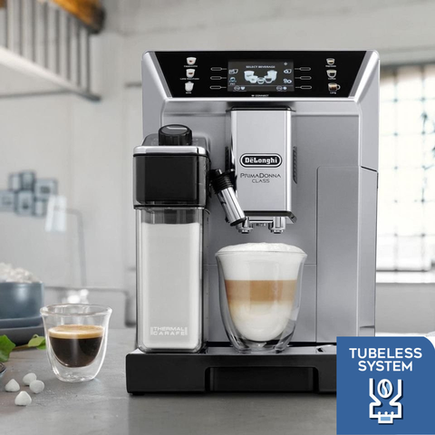 Máy Pha Cà Phê De’Longhi PrimaDonna Class ECAM 550.65.SB với hệ thống Tubeless De’Longhi giúp giảm lượng bột cà phê còn lại bên trong máy xay đến mức tối thiểu, vì vậy chỉ cà phê mới xay được sử dụng để tạo ra ly cà phê espresso chất lượng cho bạn.