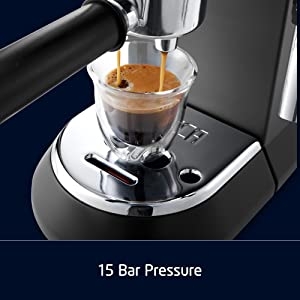 • Áp suất chuyên nghiệp 15 bar đảm bảo tạo ra một cốc cà phê Espresso chất lượng tuyệt hảo và đồng đều mỗi lần với hương thơm ngây ngất và một lớp kem Crema màu hạt cà phê hấp dẫn trên bề mặt cốc.