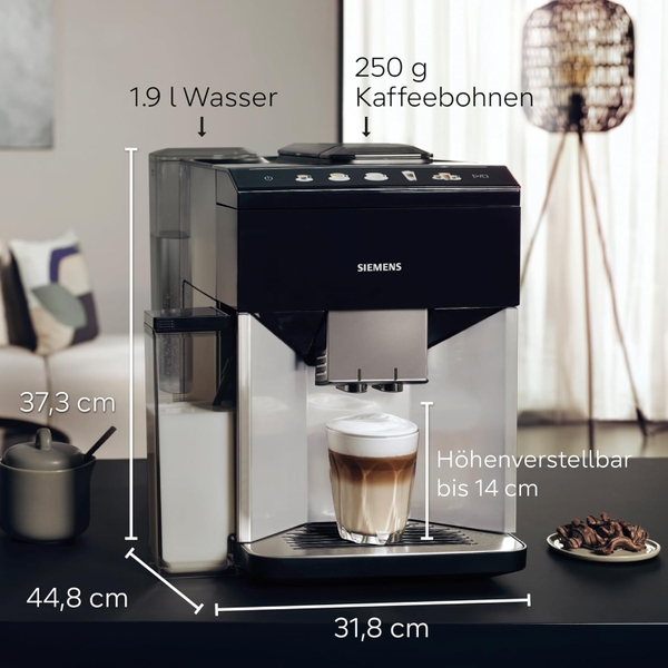 Với hệ thống iAroma độc đáo, máy pha cà phê hoàn toàn tự động của Siemens luôn đảm bảo chất lượng đồ uống tốt nhất. Sự tương tác của máy xay gốm siêu bền, máy đun nước tức thời thông minh, máy bơm nước và bộ phận ủ công nghệ cao tạo nên sự hoàn hảo về kỹ thuật từ hạt đậu đến cốc.