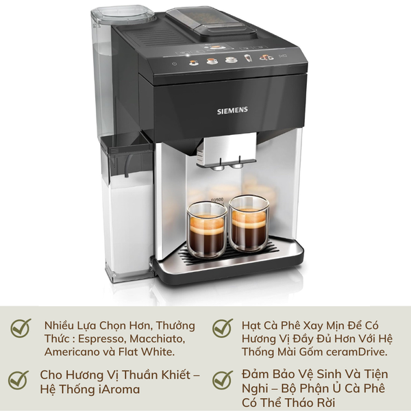 Bạn đang xem: Máy pha cà phê hoàn toàn tự động Siemens TQ513D01 EQ.500