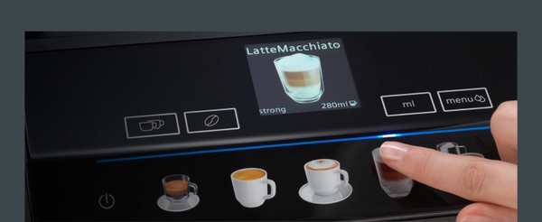 Thao tác dễ dàng và nhấn tất cả các tùy chọn trong nháy mắt – nhờ màn hình coffeeSelect có màu và trực quan, bạn có thể chuẩn bị cà phê mong muốn của mình một cách nhanh chóng và thân thiện với người dùng. Thưởng thức cà phê với máy pha cà phê Siemens thật dễ dàng.