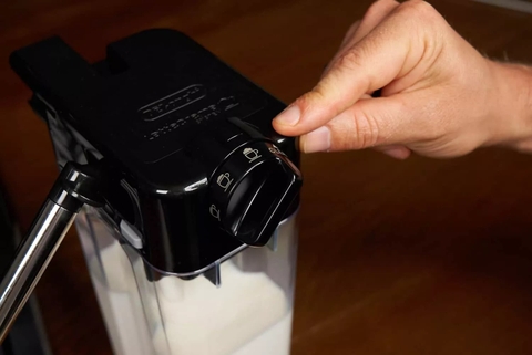 Hệ thống pha Cappuccino tự động nhờ trang bị sẵn một hộp chứa sữa với chức năng tự động vệ sinh, giúp đánh ra bọt sữa nhanh. Bình đựng sữa có thể tháo ra và bảo quản trong tủ lạnh giữa các lần sử dụng nhằm bảo quản sữa tươi được lâu hơn.