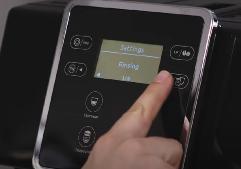 - Phím chọn nhanh cho cappuccino cũng như 5 chế độ cà phê được cài đặt sẵn từ rất nhẹ đến rất đậm
