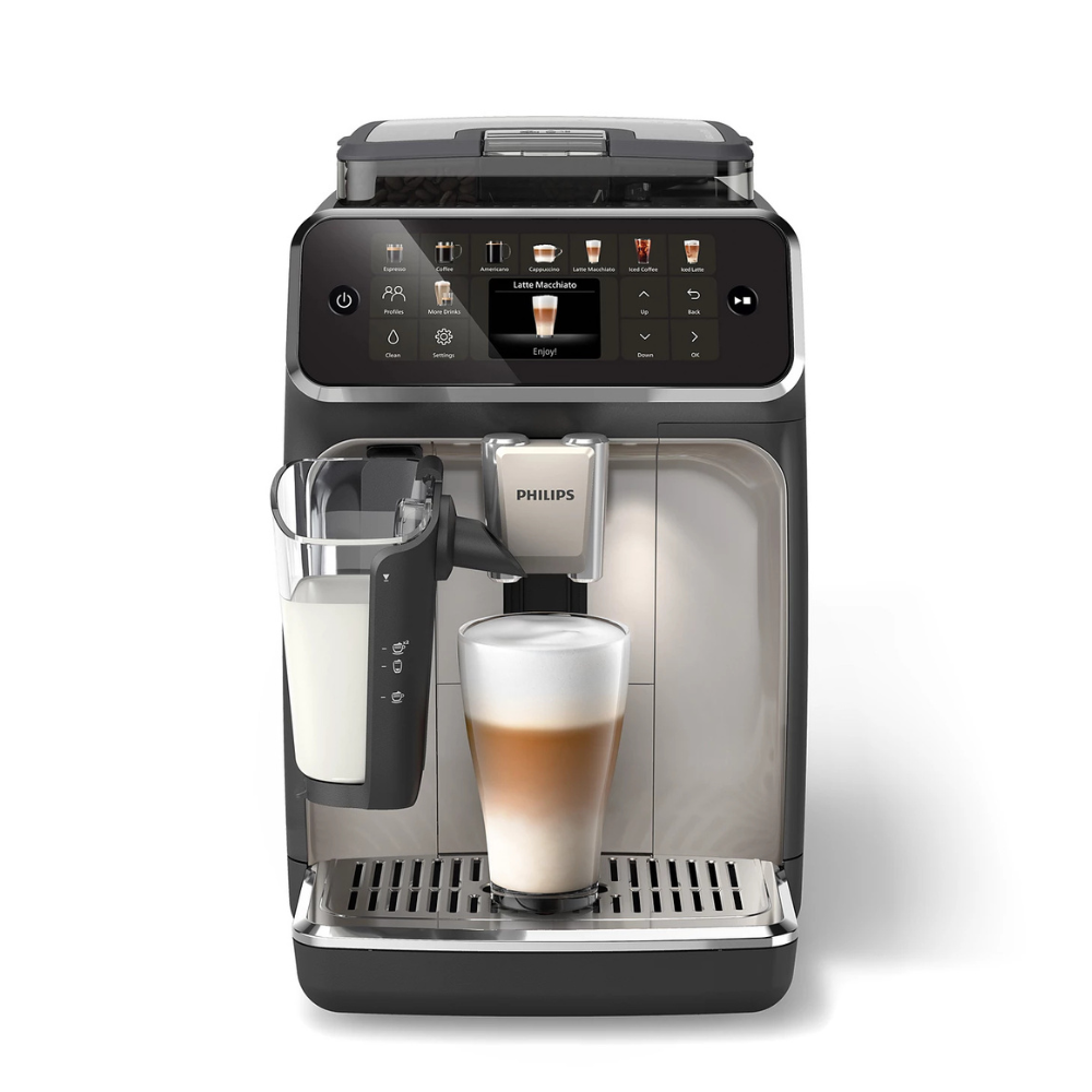 Máy pha cà phê Philips EP5544/50 - Series 5500 là một dòng máy tự động cao cấp, cho phép pha chế đến 20 loại đồ uống khác nhau chỉ với một chạm, nổi bật với hệ thống sữa LatteGo, máy xay gốm với 12 cấp độ xay và công nghệ chiết xuất Aroma Extract. Máy được thiết kế để mang lại sự tiện lợi và chất lượng cà phê chuẩn quán ngay tại nhà, với các tính năng như QuickStart, Extra Shot (tăng cường độ đậm đà) và hoạt động êm ái.