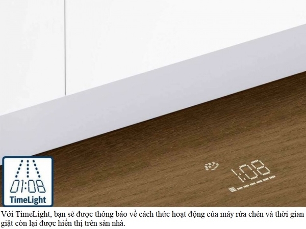 Với tính năng TimeLight bạn không chỉ biết rằng Máy rửa bát Bosch SMV6ZCX42E Series 6 của bạn vẫn đang chạy mà còn biết được máy vẫn chạy trong bao lâu, khi màn hình hiển thị thời gian còn lại hoặc thời gian thực được chiếu lên sàn. Ngoài ra, trạng thái tiến trình chương trình được hiển thị một cách chi tiết.
