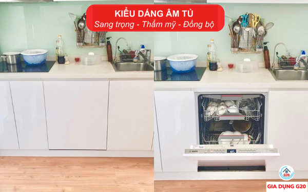 Kiểu dáng âm tủ sang trọng, đồng bộ với không gian bếp