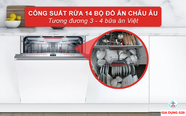 Dung tích chứa lớn, công suất rửa 14 bộ phù hợp gia đình 4 - 6 người