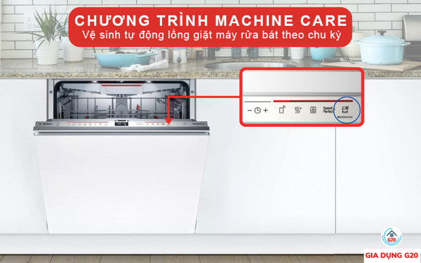 Chương trình Machine Care tự động vệ sinh khoang máy rửa bát