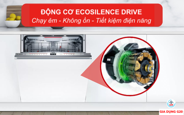 Máy rửa bát Bosch serie 6 SMV6ZCX42E hoạt động êm ái hơn với động cơ EcoSilence Drive. Đây là động cơ tiên tiến không sử dụng chổi than và dây gioăng liên kết. Trong suốt chu trình rửa, các động cơ sẽ không cọ sát vào nhau và tạo ra tiếng ồn.