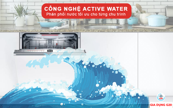Công nghệ ActiveWater đẩy mạnh hiệu quả sử dụng tài nguyên nước cho máy rửa. Sau mỗi chu trình rửa, lượng nước sẽ được cảm biến độ bẩn. Nếu nước có thể tái sử dụng nó sẽ được dùng cho lần rửa tiếp theo. Bên cạnh đó, tùy thuộc vào lượng bát đĩa có trong khoang, máy sẽ tùy chỉnh lượng nước phun ra. Như vậy sẽ tiết kiệm tối đa lượng nước tiêu thụ.