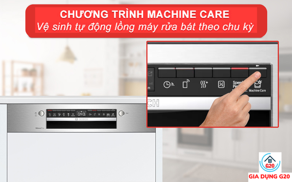 Machine Care là chương trình vệ sinh tự động khoang máy rửa bát. Khi kích hoạt, tính năng sẽ thực hiện xả lượng nước như quá trình rửa full tải với nhiệt độ cao giúp làm sạch khoang máy để sẵn sàng phục vụ cho những lần rửa tiếp theo.