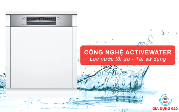 Công nghệ ActiveWater hoạt động dựa trên cảm biến đo lường của máy. Nhờ việc tích hợp công nghệ này, máy rửa bát này có thể tự động điều tiết và phân bổ lượng nước rửa tương thích với số lượng bát đĩa và độ bẩn.
