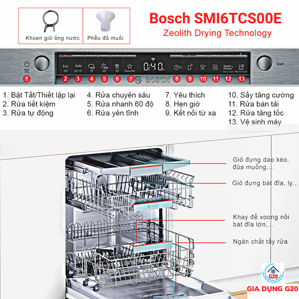 Đặc điểm nổi bật của Máy Rửa Bát Bán Âm Bosch SMI6TCS00E Serie 6 – Công Nghệ Sấy Zeolith