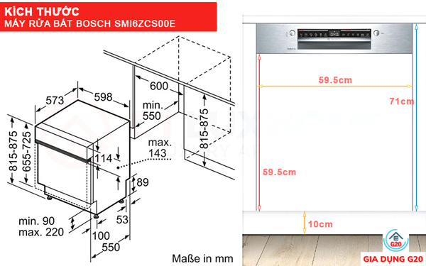 Là một thiết kế âm bán phần, máy rửa bát Bosch SMI6TCS00E có thể lắp đặt dưới các hệ tủ bếp. Bạn có thể chọn các máy có kích thước phù với dàn tủ bếp của gia đình mình.