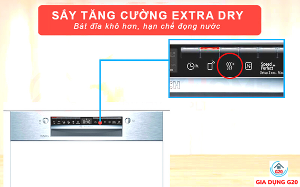 Sấy tăng cường Extra Dry cho bát đĩa khô hơn, hạn chế đọng nước