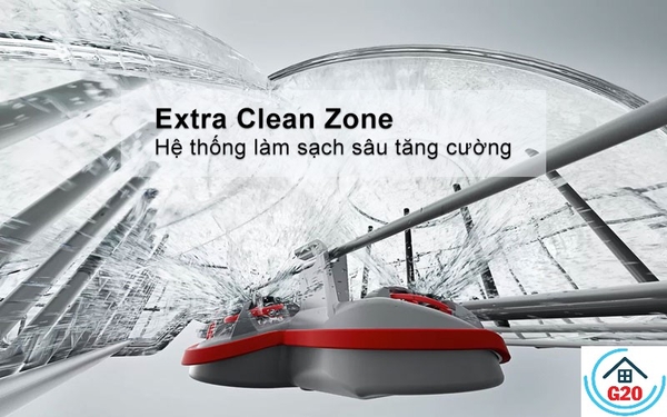 Extra Clean Zone với ba vòi phun nước xoay tròn tạo ra dòng nước mạnh cho món ăn cần ngâm thêm. Điều này cung cấp cho bát đĩa của bạn nhiều nước gấp ba lần và làm sạch nó một cách đặc biệt triệt để mà không cần thêm chất tẩy rửa hoặc nhiệt độ cao hơn. Có thể dễ dàng kích hoạt Extra Clean Zone chỉ với một lần chạm vào dấu hiệu bật / tắt, do đó, ngay cả những món ăn rất bẩn cũng được rửa sạch hoàn hảo.