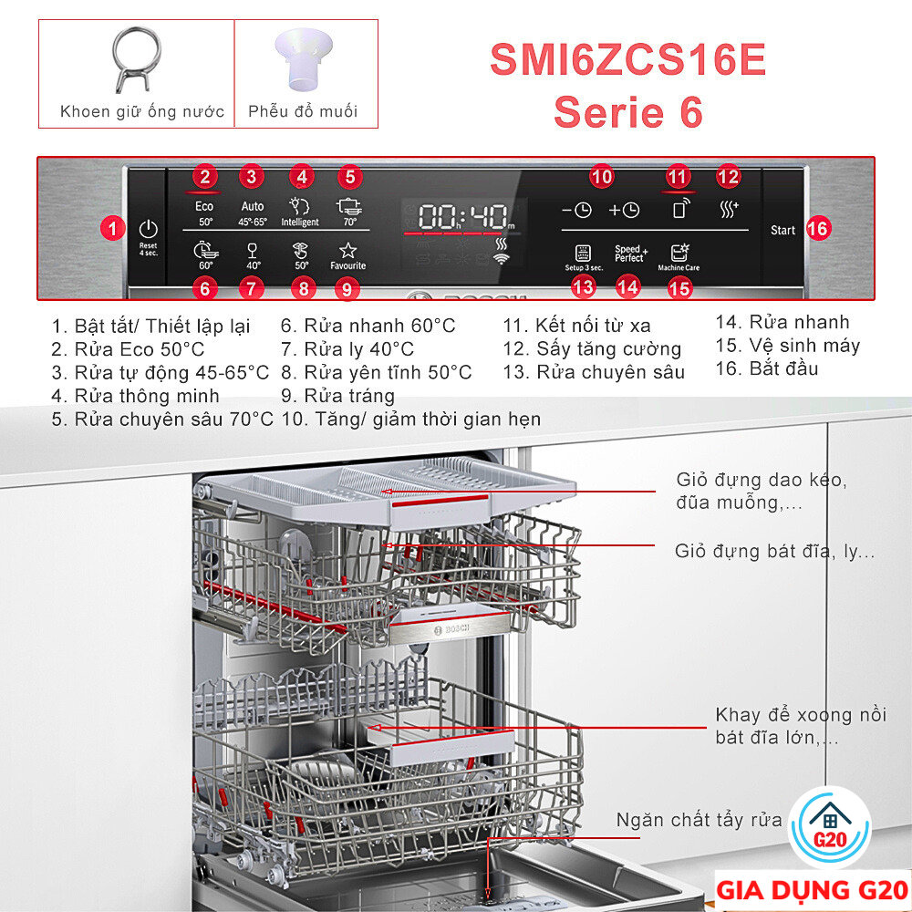 MÁY RỬA BÁT BÁN ÂM BOSCH SMI6ZCS16E SERIE 6 SẤY ZEOLITH