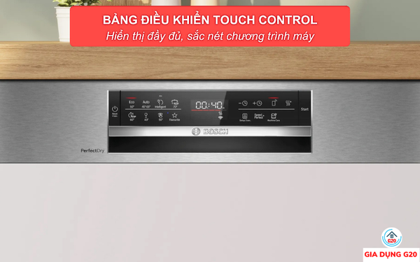 Đi theo máy rửa bát bán âm Bosch SMI6ZCS16E là bảng điều khiển hiện đại dễ thao tác và sử dụng. Ngoài ra, còn có màn hình LED hiện thị rõ thời gian và tình trạng của máy rửa chén.