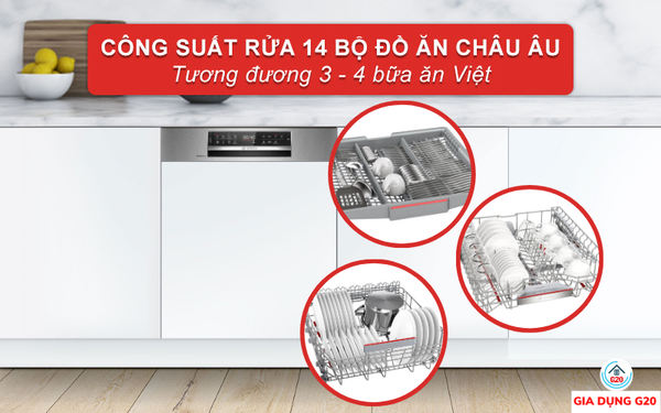 Thông số kỹ thuật máy rửa bát bán âm Bosch SMI6ZCS16E Serie 6, Dung tích 14 bộ