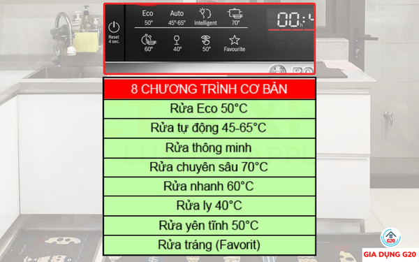 Tùy chọn đa dạng với 8 chương trình rửa cơ bản phục vụ đầy đủ nhu cầu rửa hằng ngày